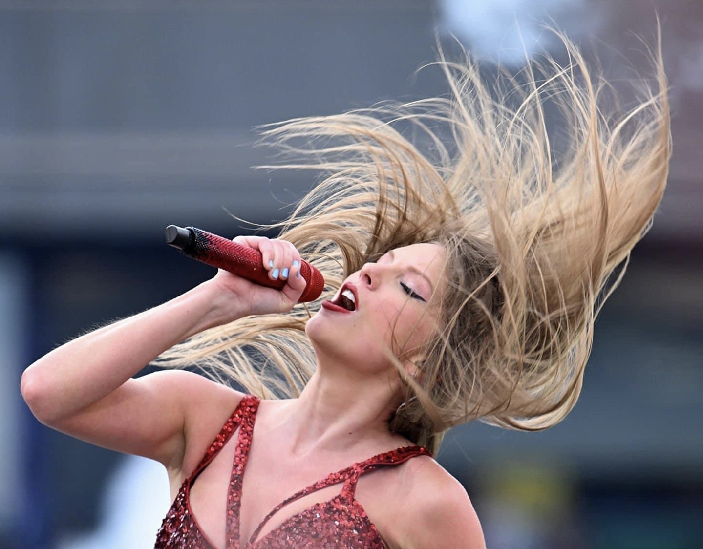 The song is “All Too Well”—her 10-minute version—and as it builds to one of its heartfelt choruses, the roar of over 73,000 fans singing along with her follows in an echoing crescendo that practically ripples the water.